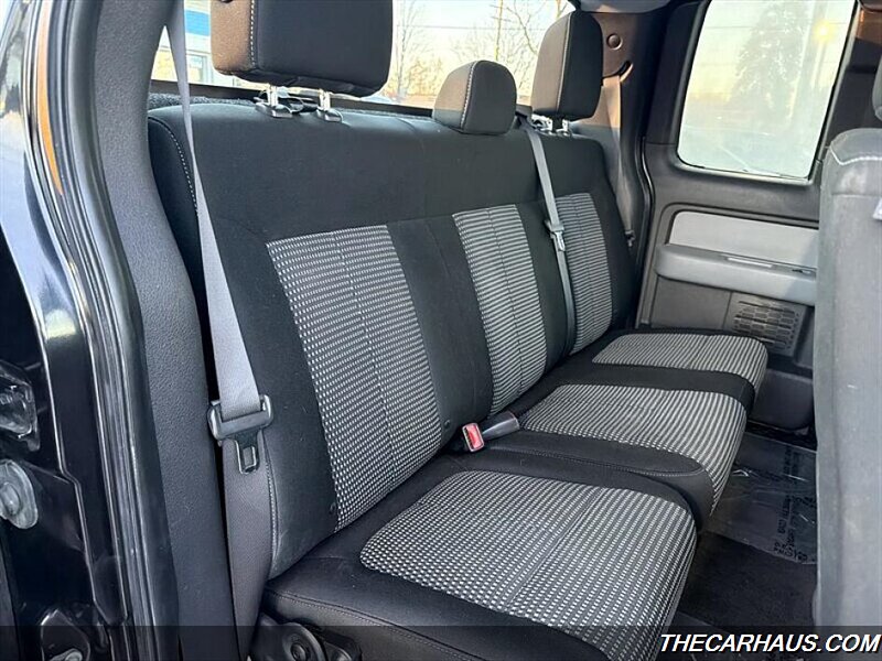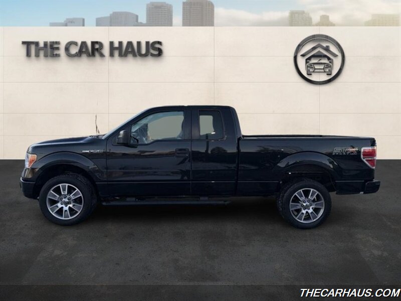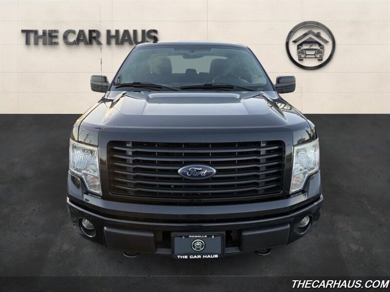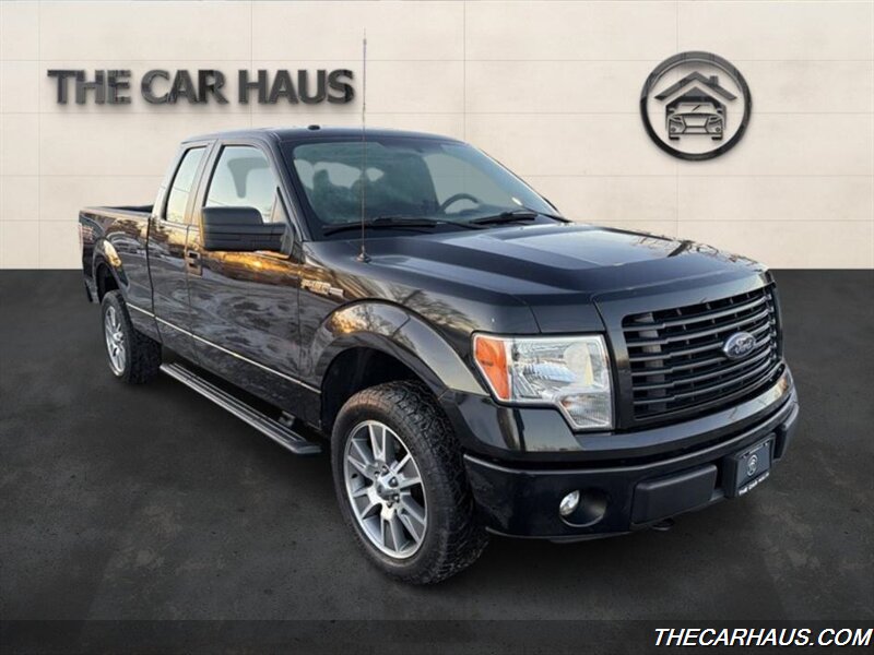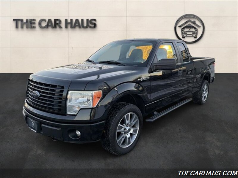 2014 Ford F-150 STX — Tuxedo Black Metallic exterior, Steel Gray cloth interior. This truck is powered by the factory 5.0L Flex Fuel V8 (360 hp, 380 lb-ft) paired with Ford’s 6-speed automatic transmission. It has under 81,000 miles (averaging less than 7,000 miles per year), is in excellent overall condition and comes with a clean CARFAX.
