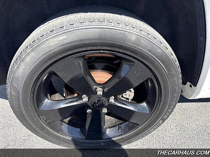 Finished in a striking Bright White Clear Coat, the exterior of the 2015 Grand Cherokee Laredo exudes a sense of sophistication and ruggedness. The bold Jeep grille design, distinctive headlights, and sleek body lines give this SUV a commanding presence on the road. Standard features include automatic halogen quad headlamps, fog lights, power heated mirrors, and deep-tint sunscreen glass. The 17-inch aluminum wheels not only enhance the vehicle's aesthetics but also contribute to a smooth and stable ride.