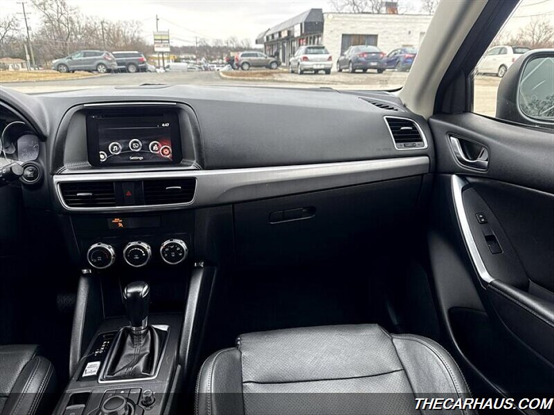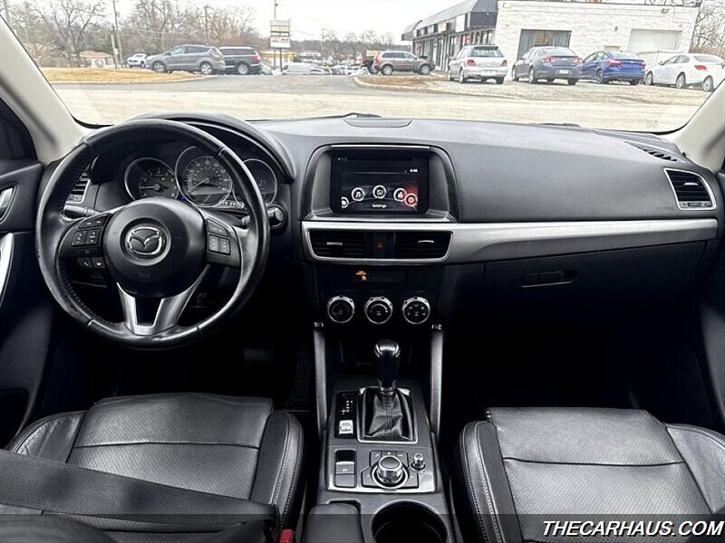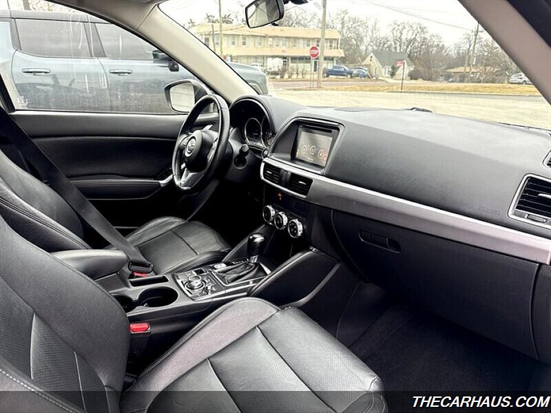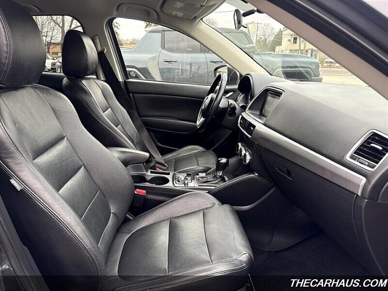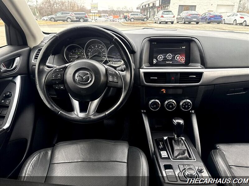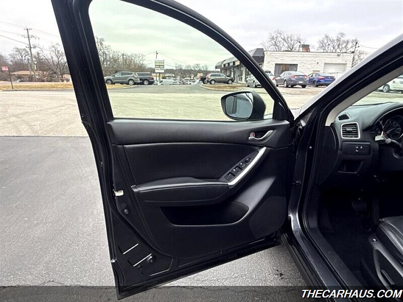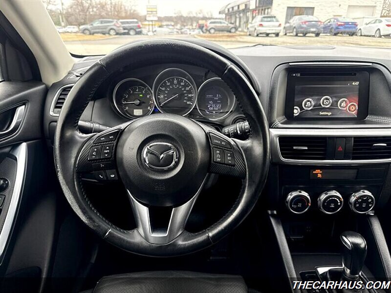 2016 Mazda CX-5 Touring — Meteor Gray Mica exterior, Black leather interior. Powered by Mazda’s SKYACTIV-G 2.5L inline-4 (184 hp / 185 lb-ft) paired with the SKYACTIV-Drive 6-speed automatic transmission. EPA-rated at 24 MPG city and 30 MPG highway.