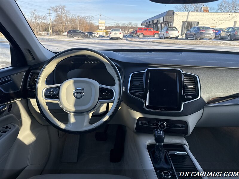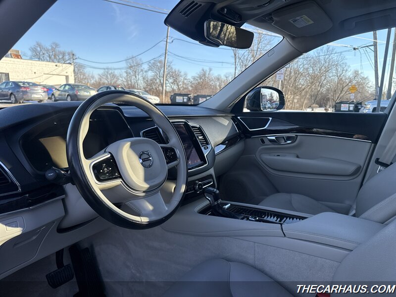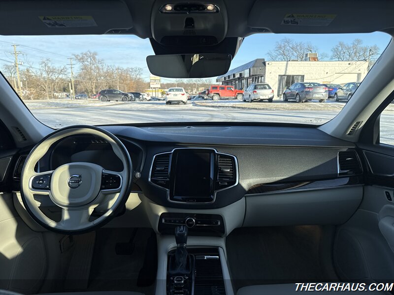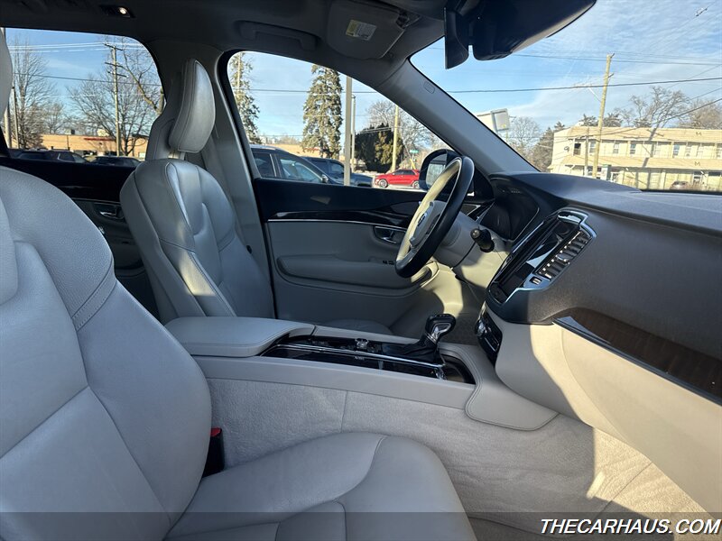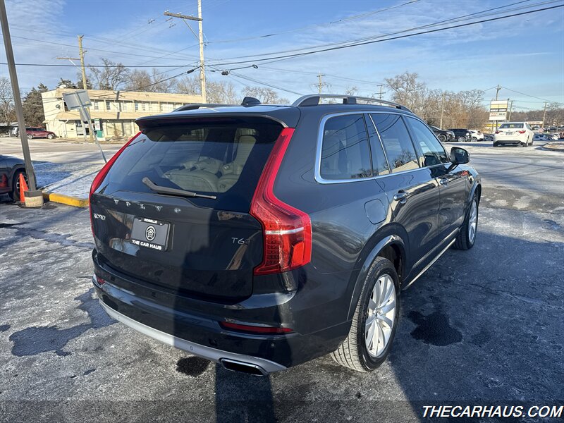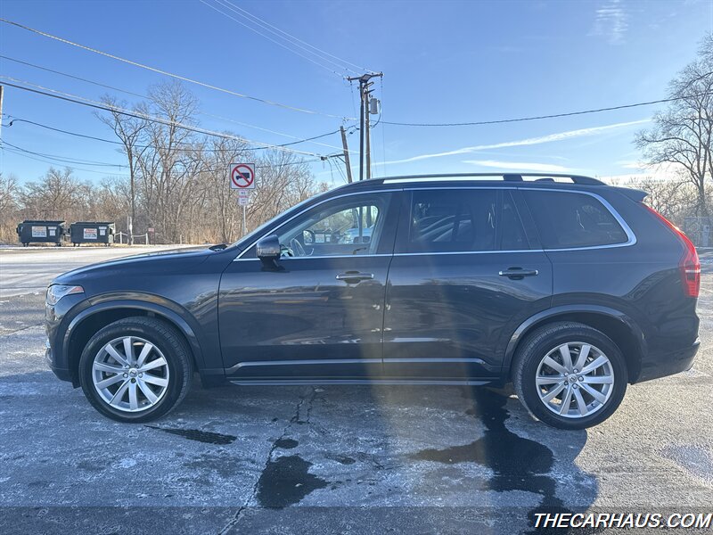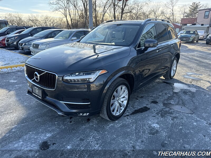 2016 Volvo XC90 T6 Momentum — Savile Gray Metallic exterior with Blond leather interior. This XC90 is powered by the factory 2.0L twin-charged inline-4 delivering 316 hp and 295 ft-lbs of torque, paired with an 8-speed automatic transmission and all-wheel drive for confident everyday performance. Fuel economy is rated at approximately 22 MPG city / 25 MPG highway. The vehicle shows under 91,000 miles total (averaging less than 9,000 miles per year) and is in excellent overall condition with a clean CARFAX report.