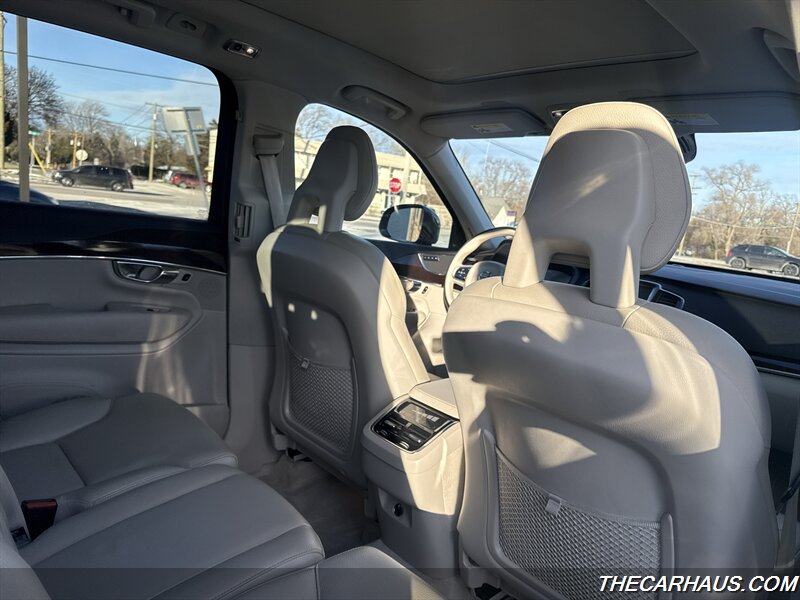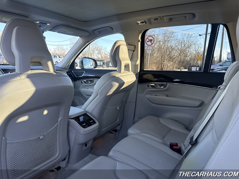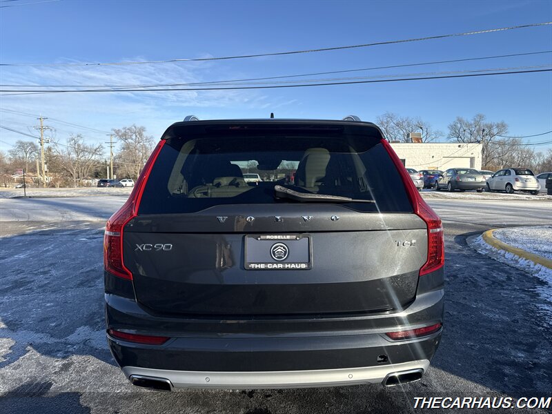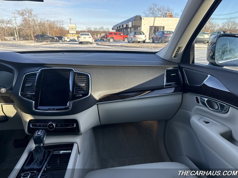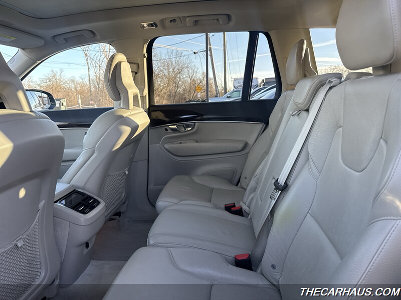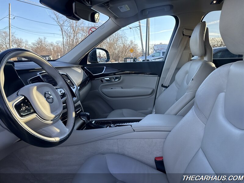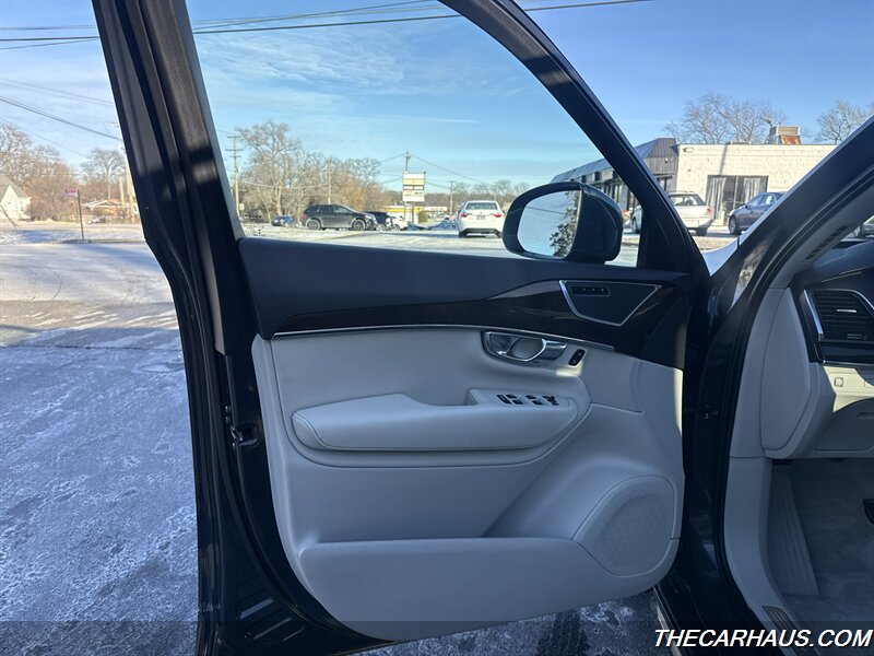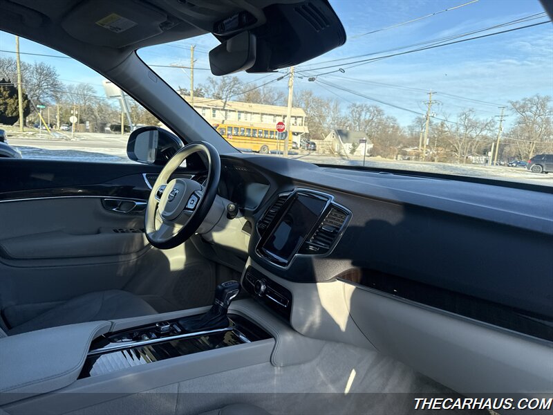 2016 Volvo XC90 T6 Momentum — Savile Gray Metallic exterior with Blond leather interior. This XC90 is powered by the factory 2.0L twin-charged inline-4 delivering 316 hp and 295 ft-lbs of torque, paired with an 8-speed automatic transmission and all-wheel drive for confident everyday performance. Fuel economy is rated at approximately 22 MPG city / 25 MPG highway. The vehicle shows under 91,000 miles total (averaging less than 9,000 miles per year) and is in excellent overall condition with a clean CARFAX report.