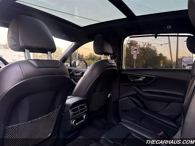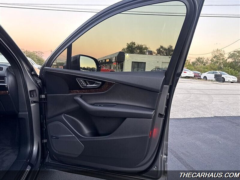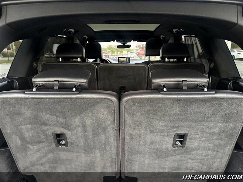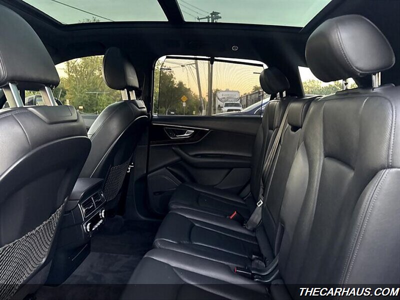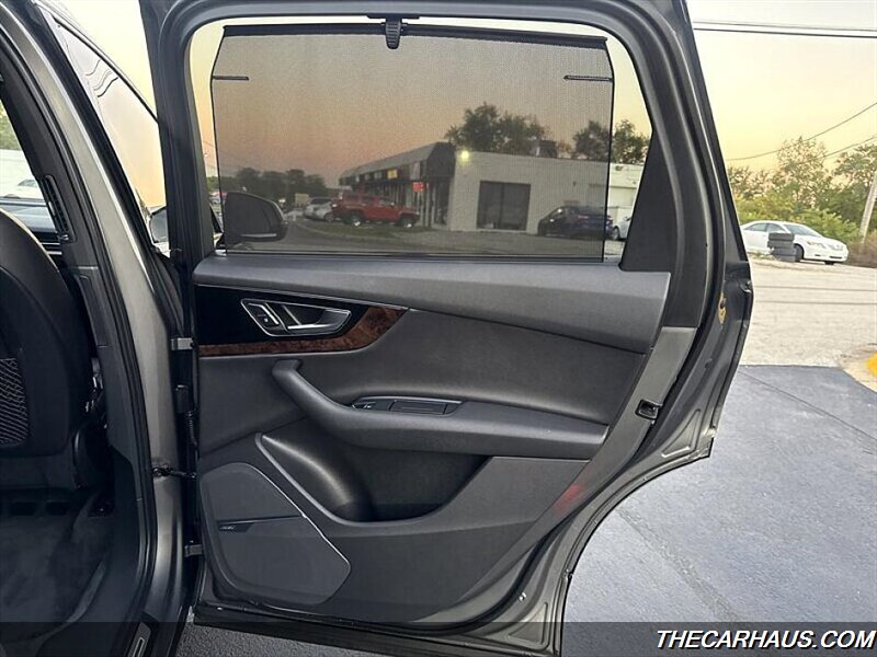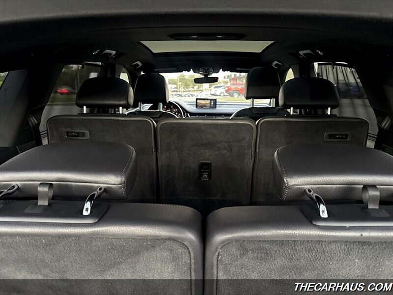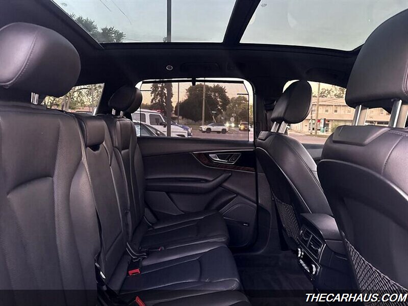 Inside, the Q7 features a luxurious black leather interior that exudes elegance and comfort. The spacious cabin is designed to accommodate up to seven passengers, with ample legroom and headroom in all three rows. The front seats are power-adjustable, heated, and ventilated, ensuring a comfortable ride regardless of the weather. The second-row seats also offer a sliding feature, providing flexibility for cargo space or passenger comfort. The third row folds flat, allowing for additional cargo capacity when needed.