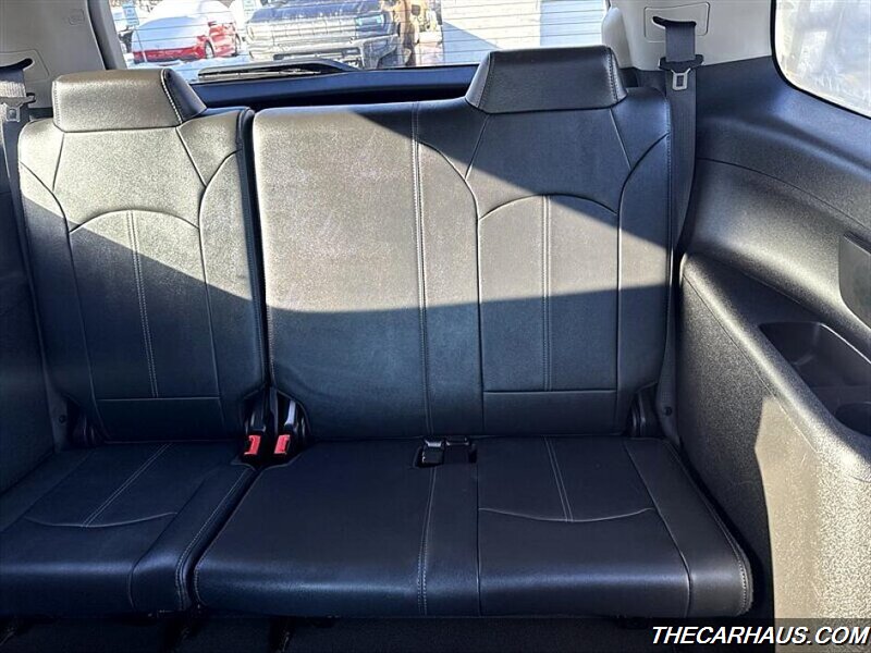 The exterior of the Acadia Limited is finished in a striking Ebony Twilight Metallic, which not only enhances its aesthetic appeal but also provides a sleek and sophisticated look. The interior boasts luxurious Ebony leather seating that complements the exterior color beautifully, creating an inviting atmosphere for both driver and passengers. The spacious cabin features three rows of seating, comfortably accommodating up to seven passengers, with ample cargo space available when the rear seats are folded down.
