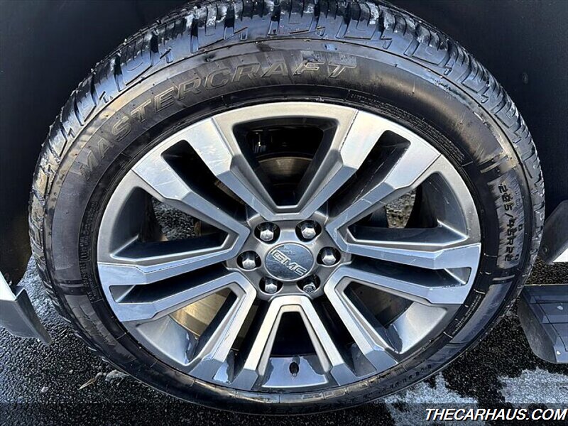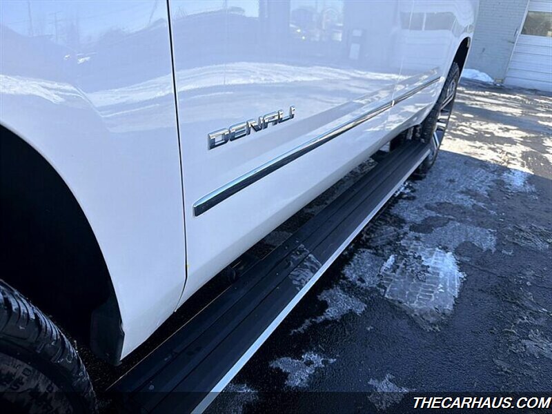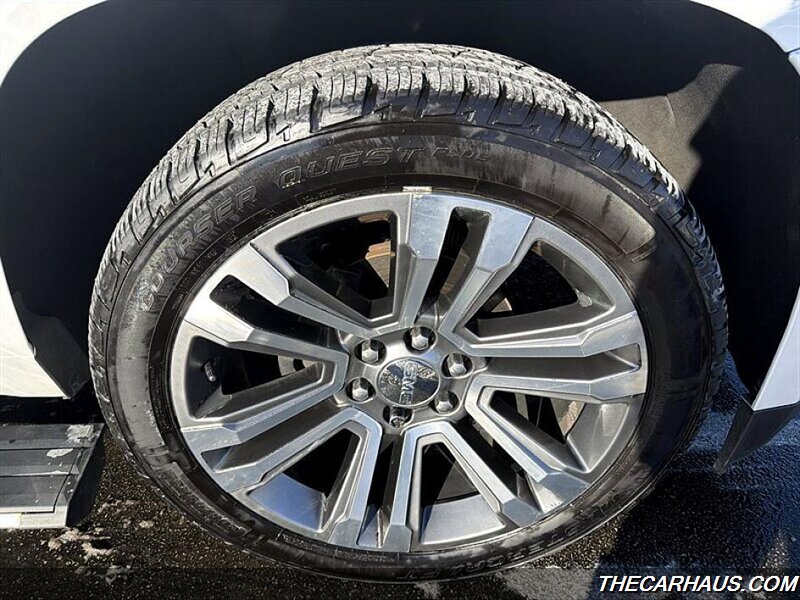 - Exterior styling and convenience: Signature Denali chrome grille and trim, White Frost Tricoat paint, premium alloy wheels, integrated roof rails and chrome-accented exterior details. Heated, power-adjustable, power-folding side mirrors with integrated turn signals, front fog lamps, and a hands-free power liftgate for easier loading.
