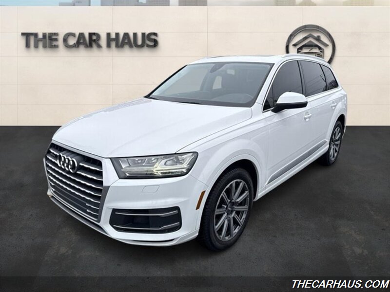 2019 Audi Q7 quattro Premium Plus 55 TFSI — Carrara White exterior, Nougat Brown leather interior. This Q7 is powered by the factory 3.0L supercharged V6 producing 329 hp and 325 lb-ft of torque, paired with an 8-speed Tiptronic automatic transmission and Audi quattro all-wheel drive. EPA-rated fuel economy is 19 MPG city and 25 MPG highway. The vehicle is in excellent overall condition with a clean CARFAX report.