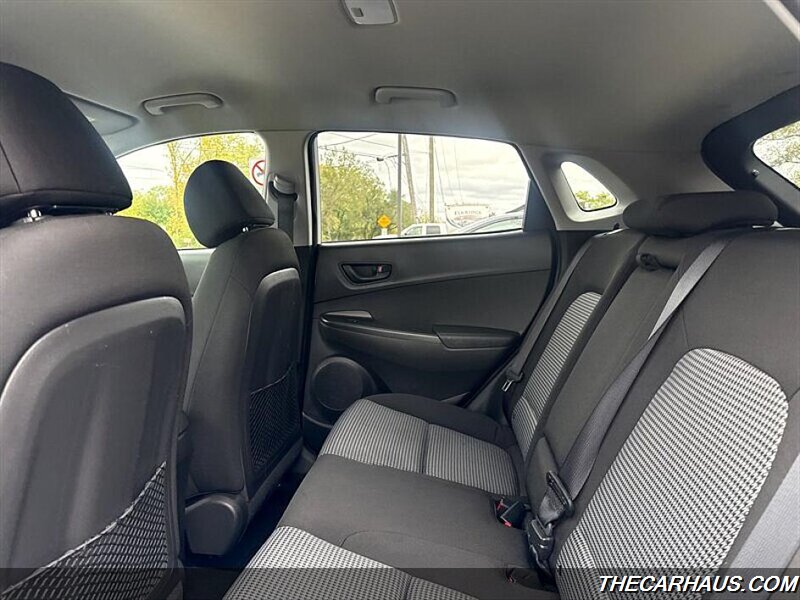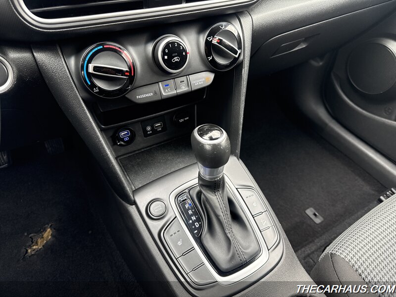 Moving to the interior, the KONA SEL is designed with comfort and convenience in mind. The cabin features a Gray/Black cloth upholstery that offers a warm and inviting ambiance. The spacious interior comfortably accommodates up to five passengers, with ample legroom and headroom for everyone. The rear seats can be folded down to expand the cargo space, making it easy to transport larger items when needed.