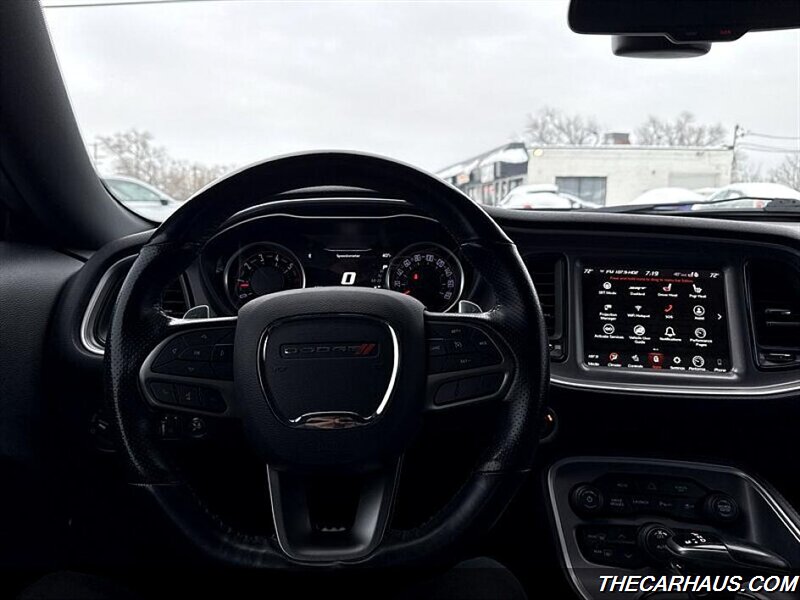 The exterior of this Challenger is finished in a striking White Knuckle Clear Coat, providing a bold and classic look that stands out on the road. The aggressive stance and iconic lines of the Challenger are complemented by a range of factory features, ensuring a commanding presence wherever you go.