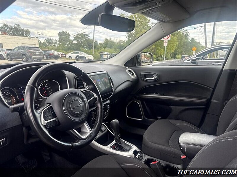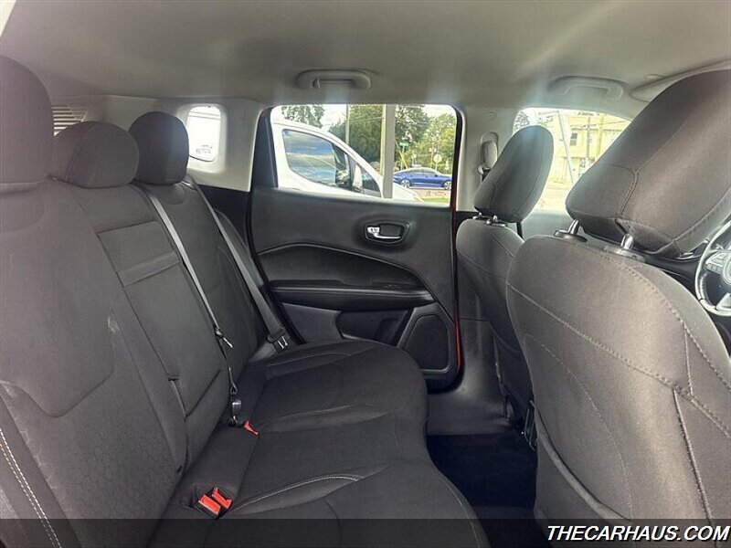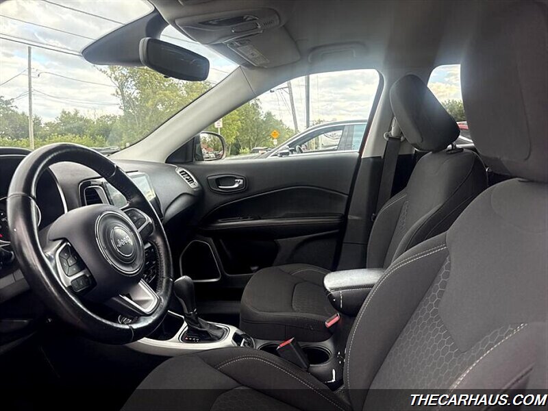 Stepping inside the Jeep Compass Sport, you'll find a spacious and comfortable interior that is designed to enhance your driving experience. The black cloth upholstery adds a touch of sophistication to the cabin, while providing a cozy and inviting atmosphere for both drivers and passengers. The ergonomic layout of the interior ensures that all controls and features are easily accessible, allowing you to focus on the road ahead.