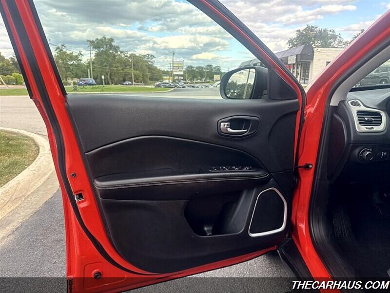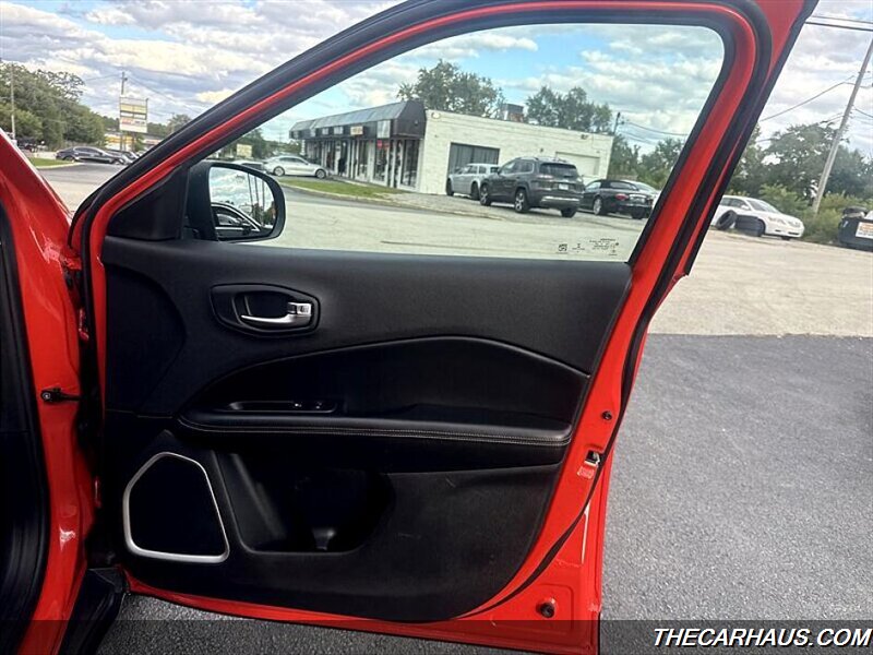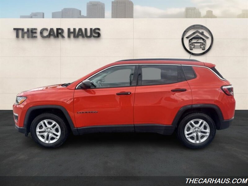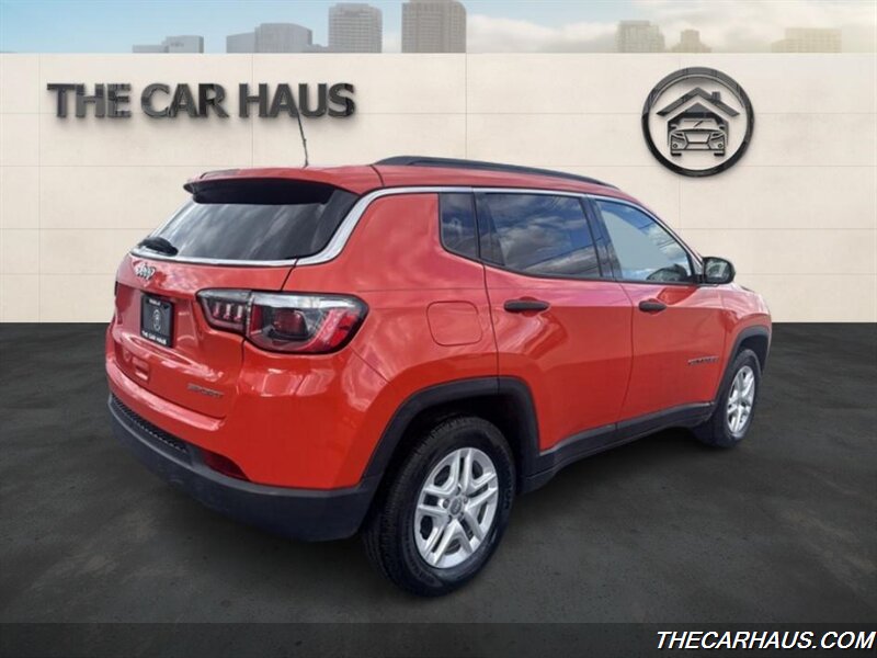 The exterior of the 2020 Jeep Compass Sport is finished in a striking Spitfire Orange Clear Coat, giving it a bold and distinctive look that sets it apart from the competition. The sleek lines and modern design elements of this vehicle contribute to its overall aesthetic appeal, making it a standout choice for drivers who appreciate style and functionality.