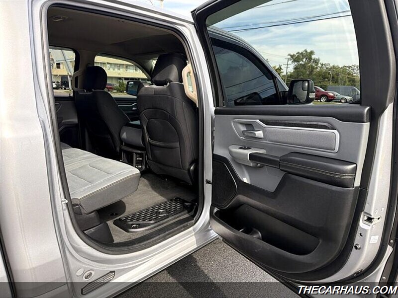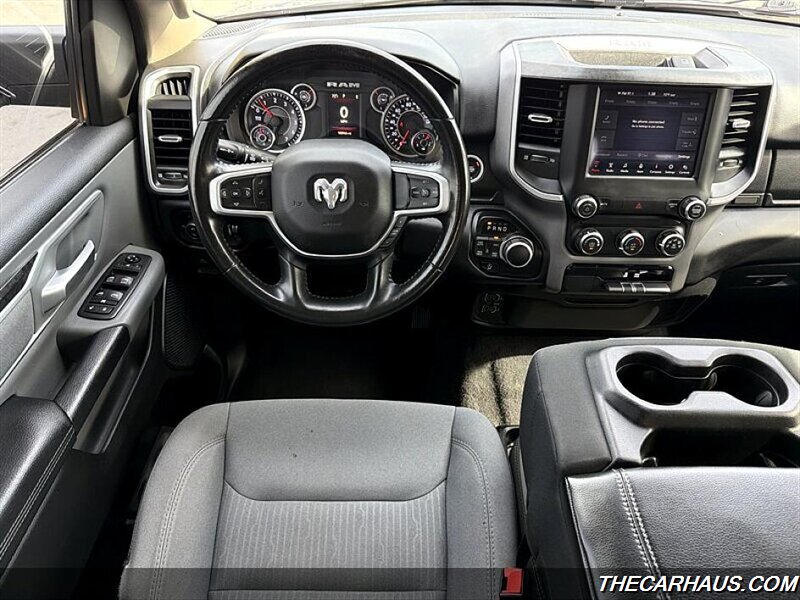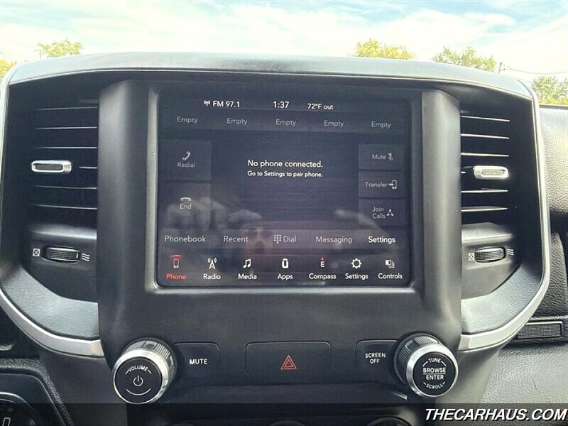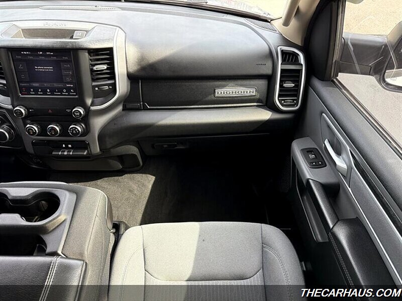 As for factory default features, this RAM 1500 Big Horn is equipped with a range of amenities to enhance comfort and convenience. Inside, you'll find a spacious cabin with cloth seating, a user-friendly infotainment system, and modern technology for connectivity on the go. Safety features such as airbags, stability control, and a rearview camera provide peace of mind on every journey.