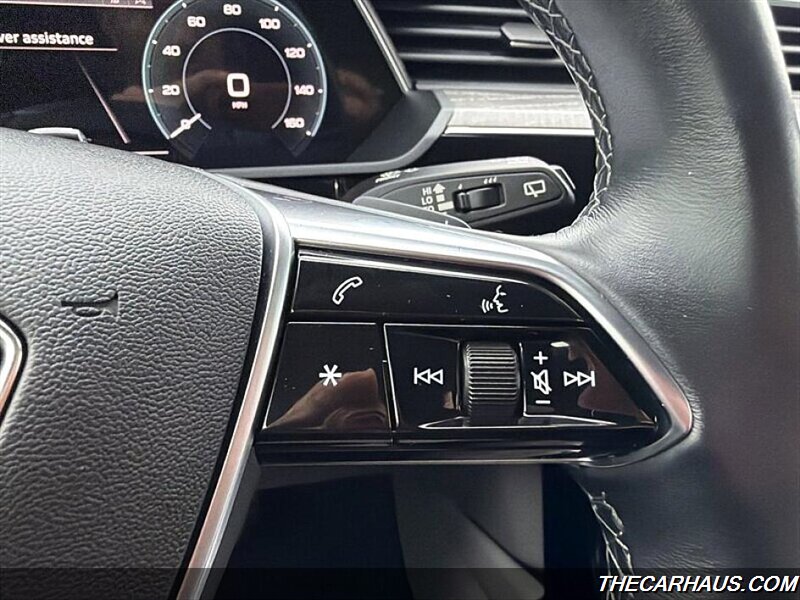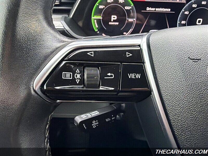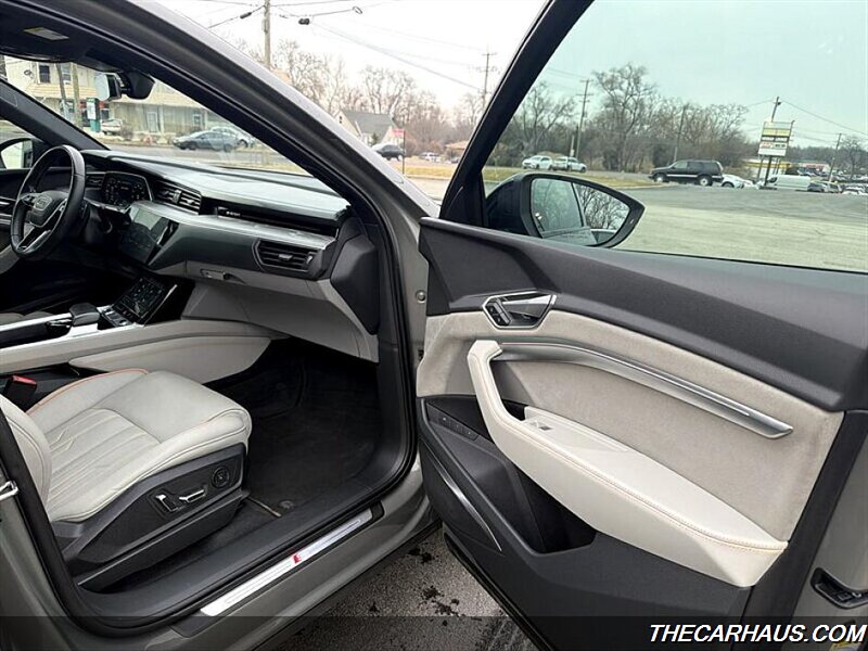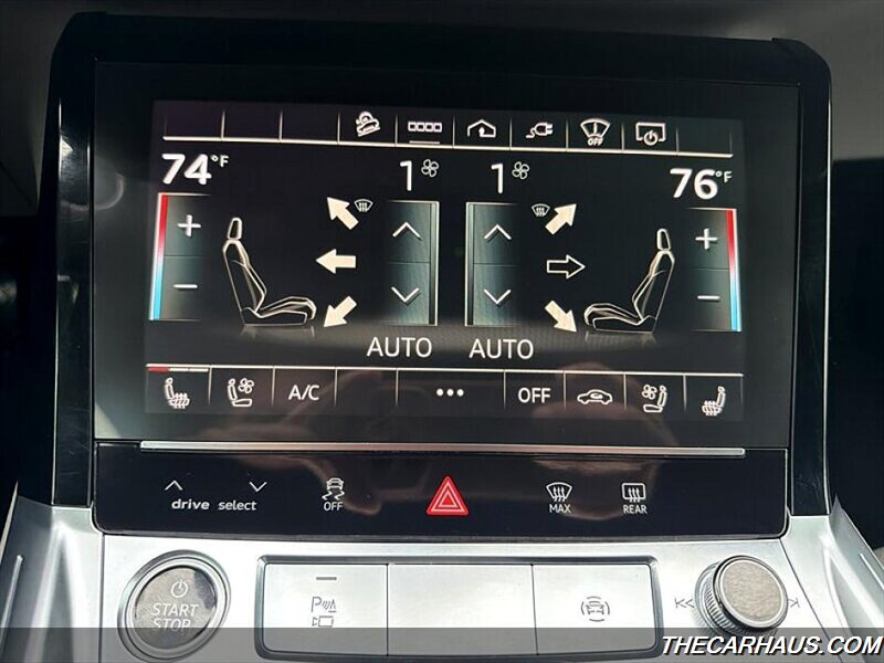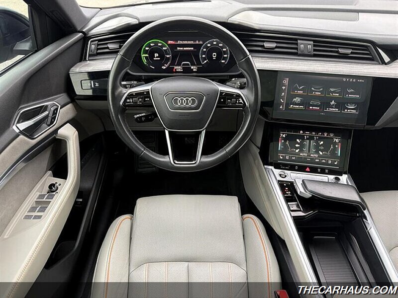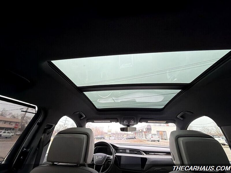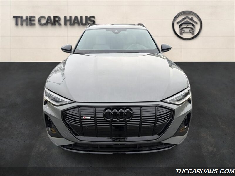 Factory-equipped to the hilt: dual-motor quattro all-wheel drive with single-speed transmission and regenerative braking, adaptive air suspension with selectable drive modes, full LED lighting (Matrix style), panoramic sunroof, power liftgate, heated power-adjustable front seats with memory, leather-trimmed interior, Audi Virtual Cockpit digital gauge cluster, dual MMI touch-response displays with navigation, Apple CarPlay/Android Auto and Bluetooth, premium audio, keyless entry/ignition, parking sensors and rearview camera, adaptive cruise with lane assist and Audi pre sense — built to attack the road from day one.