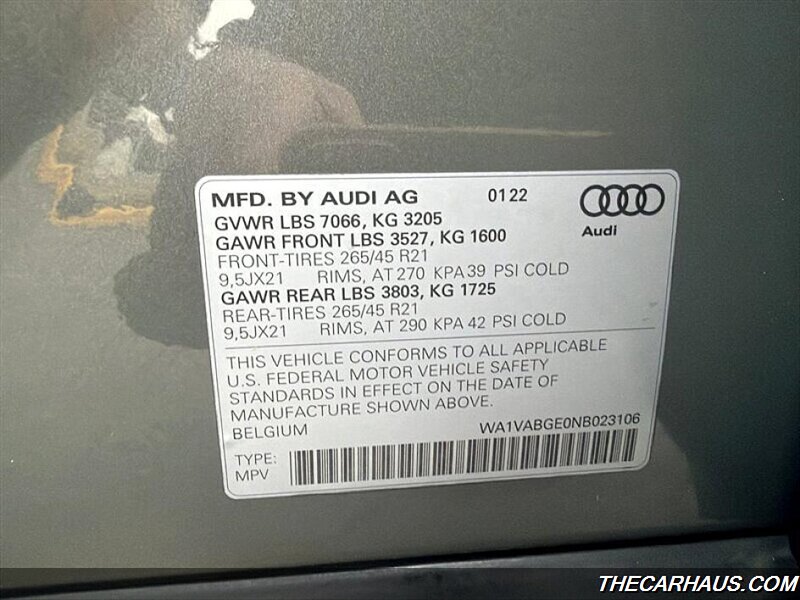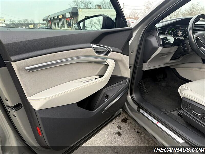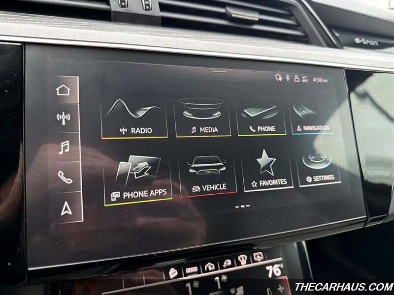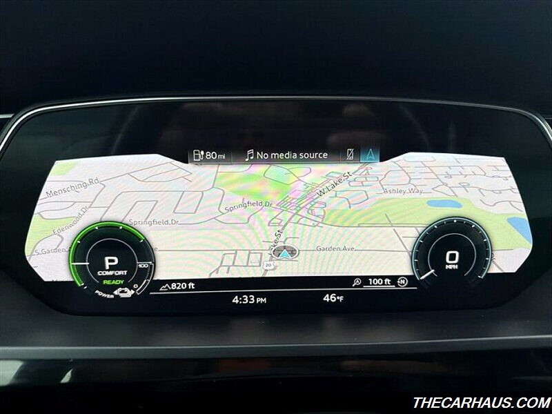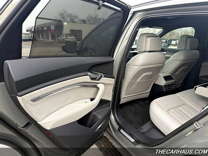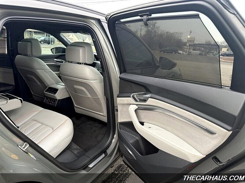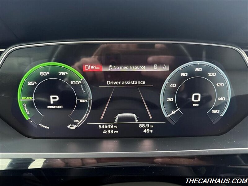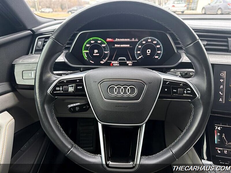 Factory-equipped to the hilt: dual-motor quattro all-wheel drive with single-speed transmission and regenerative braking, adaptive air suspension with selectable drive modes, full LED lighting (Matrix style), panoramic sunroof, power liftgate, heated power-adjustable front seats with memory, leather-trimmed interior, Audi Virtual Cockpit digital gauge cluster, dual MMI touch-response displays with navigation, Apple CarPlay/Android Auto and Bluetooth, premium audio, keyless entry/ignition, parking sensors and rearview camera, adaptive cruise with lane assist and Audi pre sense — built to attack the road from day one.